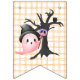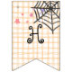 Halloween minimalista adorables banderas amarillas rosadas - simples y lindas, hasta el punto. Diseño minimalista con fondo de rejilla amarilla unas cuantas telarañas, una mansión linda y un fantasma amistoso. Si miras de cerca, encontrarás la araña en la letra O. Úsalo para tus fiestas de cumpleaños de Halloween o cualquier tipo de adorable lindo bash.