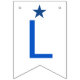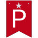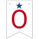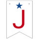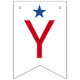 A red white and blue bunting banner with letters on each flag that read: HAPPY 4TH OF JULY