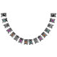 This flag shaped bunting Happy Halloween banner has to black crescent moons and colourfuly flying bats in grey, pink, greenish blue, and orange. Customise the Happy Halloween text with the templates.