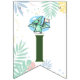 The customizable banner is designed to coordinate perfectly with the matching jungle dinosaur invitations, milestone posters, and welcome signs, ensuring a cohesive and immersive party theme. Durable and ready to hang with included ribbons, this bunting makes decorating easy and adds an adventurous, eye-catching touch to any age birthday, from a roar-some first birthday to a playful fifth birthday. Get ready to celebrate in style and let the good times begin!