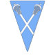 fiesta del equipo de lacrosse de Guay o decoración de eventos deportivos con palos laxos y ilustraciones de bola sobre fondo azul claro.