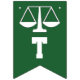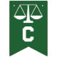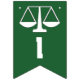 Pancarta de felicitaciones a la creativa facultad de Derecho de la Facultad de Derecho, con escalas de justicia sobre el fondo verde.