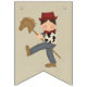 Un banner divertido tiene un vaquero de pelo rubio en ambos extremos y dice Feliz Cumpleaños con una insignia de Sheriffs entre las palabras. El vaquero lleva sus jeans azules, una camisa impresa de una vaca, una bandana roja y un gorra de vaquero rojo y está montando su poni de juguete. ¡Esta será una decoración tan bonita para un fiesta de vaqueros! También disponible en un vaquero de pelo castaño y un vaquero asiático.