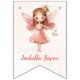 Whimsical Fairy bunting banner: Make your child's birthday dreams come true with our whimsical fairy banner! This enchanting design features a lovely pink fairy, and letters with butterflies, set against a beautiful landscape. Customize with ease to include your child's name, age. Ideal for any age, this banner promises a magical celebration. Personalize and order now to bring the fairytale to life! The banner is part of a collection.