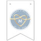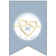 Banderas sencillas, elegantes, minimalistas y modernas de boda en azul polvoriento, con monograma y corazón de cuerda dorada.