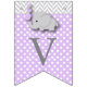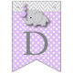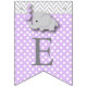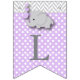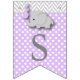 Banderines Morado, Gris Blanco 🐘 Elefante Bebé - Baptismos