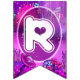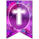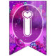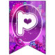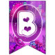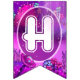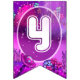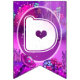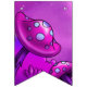 Se une a la temática fiesta un banner fiesta con las letras "Feliz Cumpleaños" en cada bandera y hongos y plantas púrpura en el fondo con las letras dentro de un oval. Como parte del tema del "Cumpleaños de los dulces negros", este es un lindo diseño para los chicas en su día especial de celebración.