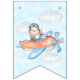 Una hermosa bandera de cumpleaños con un diseño de acuarela de un lindo pingüino de bebé piloteando un avión/avión personalizado con un fondo azul claro del cielo con nubes esponjosas. Personaliza con la edad de cumpleaños . Ideal para los primeros años de vida de los bebés, para los pequeños cumpleaños y las duchas para bebés. Artículos de Fiesta coincidentes disponibles en Suzigifts.