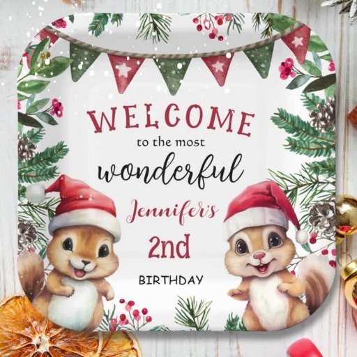 Cute Squirrel Christmas 2nd Birthday PartyDiseñado por H-Art Studio Design