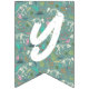 Este bonito y moderno diseño de paquetes de cumpleaños prehistórico con temática de dinosaurios presenta un ilustracion azul y verde con una tipografía encantadora.