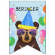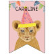 Un oso bebé y un león personalizan los nombres de los niños con banderas. ¡Personalizable