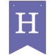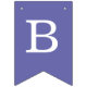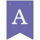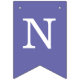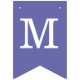 Una simple bandera de banderines para una boda de violeta (púrpura), con los nombres de la novia y el novio, con mayúsculas blancas sobre fondo violeta.