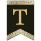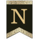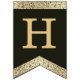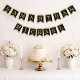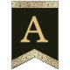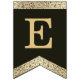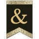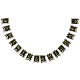 Una bandera de banderines con un aire vintage apto para una boda con colores de boda negros y dorados.