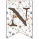 Esta banderas de fiesta floral dulce tiene un ilustracion en el fondo de flores silvestres primaverales de colores suaves. Centered es libros viejos en un montón de flores dulces. Parte de una colección con el tema "Un nuevo capítulo está a punto de ser contado". Es el ejemplo del apellido del bebé de siete letras. Si desea diseñarlo con nombres más cortos o más largos, cada marca tiene tres capas dentro de la herramienta de diseño. El fondo, la carta y la pila de libros. Cambiando el orden de los layares puede hacer fácilmente cada bandera con o sin letras o libros.