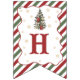 A festive holiday-themed “Happy Birthday” banner featuring red, green, and white candy cane stripes with Christmas greenery and gold snowflake accents. This cheerful winter design is perfect for Christmas or seasonal birthday parties, adding a charming decorative touch to your celebration. Ideal for coordinating with matching first birthday or holiday-themed party décor.