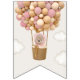 Añada un toque personal a su celebración de cumpleaños con estos artículos fiestas de diseño y memorables. El diseño presenta un oso bebé con globos rosados de fondo beige.
