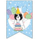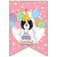 Haga especial el cumpleaños de tu Terrier Tibetano blanco y negro con nuestro adorable diseño de temática canina con un gorra fiesta y globos de colores.