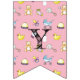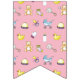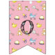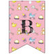 Patrón lindo con artículos para bebés en el fondo rosado: peluche, ducky de goma, pacificador, botella de bebé, cochecito... Por una niña. ¡Bienvenida, bebé!