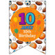 Haz una declaración audaz con este vibrante banner de cumpleaños con un nombre, un alegre número "10" rodeado de bolas deportivas, globos y confeti. Una decoración festividad perfecta para la celebración temática, tanto en el interior como en el exterior.