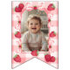 Showcase your baby girl's first year memories with this 8 Photo Red Gingham Bows Bunting Flags. This personalized photo banner is the perfect way to share her journey from newborn to her Berry First Birthday. Perfect for showing 1, 3, 6, 9 months and current photos.
