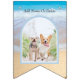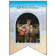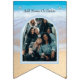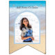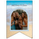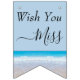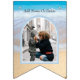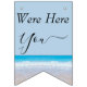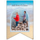 Banderas de banderín de boda de playa Chic Dusty Blue con marco de foto y guión para aquellos que no pueden asistir a la boda. Cuenta con un marco de arco de foto, una plantilla de texto para el nombre y un fondo de océano azul chic