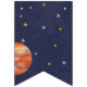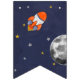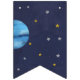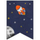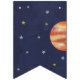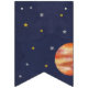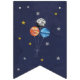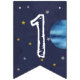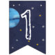 Pancarta moderna de fiesta de 1 cumpleaños. El espacio inspiró el primer viaje alrededor del sol con planetas de acuarela, cohetes y estrellas.