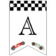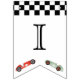 Cute tema de autos de carrera retro, banderas de cumpleaños.