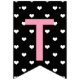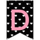 Banderas lindas del empavesado en rosado, negro, y blanco que ofrece un pequeño conejito lindo y fondos con las rayas y los corazones.