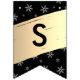 Esta pancarta de la bandera muestra el saludo de personalizable "Season's Greetings" (Saludos de temporada) de negro sobre un pincel dorado o salpicado de sorbos sobre copos de nieve pálidos sobre un fondo negro. Cada uno de los indicadores tiene un elemento de texto modificable para que el mensaje se pueda actualizar a su saludo preferido. Si termina con algún indicador en blanco, puede dejarlo en blanco o cargar su propia imagen seleccionando la plantilla "Rellenar" correspondiente para el indicador, que se encuentra debajo del mosaico de patrones y los campos de plantilla del cuadro de texto a la derecha, bajo "Más". Funciona mejor con imágenes recortadas en un fondo cuadrado transparente.