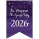 Watercolor night sky wash painting with graphic stylized stars graphic overlay. Elegant New Year bunting ideal for an new years party or event. Personalize with your own event name and new year date. Uniquely painted in watercolor and designed by Sarah Trett for www.mylittleeden.com