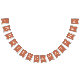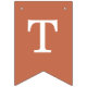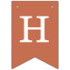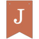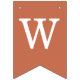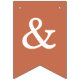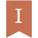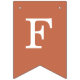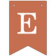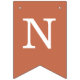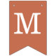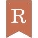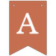 Una simple banderola de banderas para un boda de terracota, con los nombres de la novia y el novio, con gorras blancas sobre fondo marrón de terracota.