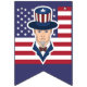 Banner de Bunting con un ilustracion del Tío Sam con la bandera estadounidense como fondo, 4 de julio diseño patriótico de Maxi Harmony / Radka Kavalcova; versión azul