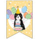 Haga especial el cumpleaños de tu Terrier Tibetano de tres colores negro con nuestro adorable diseño de temática canina con un gorra fiesta y globos coloridos.