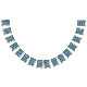 El diseño que ha proporcionado presenta un patrón geométrico repetitivo. Consiste en formas de rombo y lágrimas dispuestas de manera sellada. Los colores principales utilizados son azul, verde y blanco. Cada forma de diamante está delineada en azul, cerrando un diamante verde más pequeño que, a su vez, encierra una forma de lágrima blanca. El diseño general crea una sensación de profundidad y complejidad. Podría servir de inspiración para los patrones o elementos decorativos.