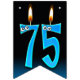 velas de cumpleaños con globos oculares sobre fondo negro y agua para 75 años