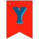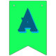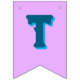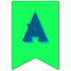 Fiesta de cumpleaños con colores y letras brillantes y audaces. Las velas de cumpleaños decoran tres de las banderas en este cartel. El color de fondo es azul acuático. Las letras gruesas y en mayúsculas son todas azul oscuro con una sombra azul más clara. Los colores de fondo varían y son: rojo, naranja, amarillo, verde y púrpura lavanda. Cada bandera mide 5,5 x 8 pulgadas y viene con una cuerda de 1,5 metros de largo. Lea más sobre el producto en la descripción. Este diseño encaja también en las banderas del triángulo, pero algunas letras pueden cortarse parcialmente.