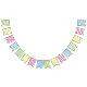 Tonos inspirados en el verano: azul de la cabaña, rosa feliz, amarillo mantequilla y verde de la menta con rayas y puntos de polka. Personaliza este divertido banner de cumpleaños con tu elección de texto y nombre.