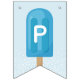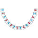 Diseñado para coincidir con las invitaciones a nuestra fiesta de cumpleaños, este bonito diseño de bandera de verano incluye dieciséis campos de texto personalizados para deletrear tu mensaje (mostrado con "Cumpleaños feliz"), con letras blancas puestas en los palillos rojo y azul. El diseño se completa con un fondo azul claro salpicado de notas blancas.