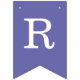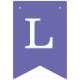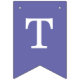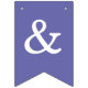 Una simple pancarta con banderas de un boda violeta (púrpura), con los nombres de la novia y el novio, con gorras blancas sobre fondo violeta.