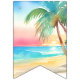 Colección de bodas de destino con una acuarela pastel de una tranquila playa tropical con palmeras. Personalizable completo.