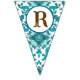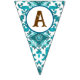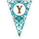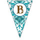 These bunting flags feature a western horse watercolor design with soft floral accents and classic cowgirl elements, including cowgirl boots and a cowgirl hat. The rich navy background paired with turquoise and neutral tones creates an elegant western look that’s perfect for a horse birthday party.