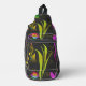 Cheerful and colorful floral pattern with abstract and botanical elements on horizontal striped background. Dark grey color.