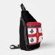 Sling Bag con la bandera de Montreal, la ciudad más poblada de la provincia de Quebec, Canadá. Bandera blanca con cruz roja, pino blanco, flor azul, rosa roja de Lancaster, roca de champú y cardo