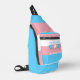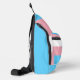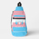 Sling Bag con la bandera del orgullo transgénero con corazones pequeños en el centro del diseño. Bandera rosa, blanca y azul del movimiento de orgullo trans; con un campo de texto editable para tu nombre o mensaje