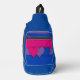 Sling Bag with bisexuality pride flag with pink, purple and blue stripes, striped pattern design with hearts, bi pride design