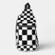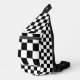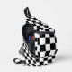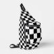 El elegante bolso de honda presenta un audaz patrón de cuadros negros y blancos. Para ver más artículos en blanco y negro bajo control, haga clic en el enlace "Artes rocosas".