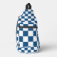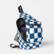 El elegante bolso de honda presenta un audaz patrón de cuadros azules y blancos. Para ver más elementos azul y blanco bajo control, haga clic en el enlace "Artes rocosas".