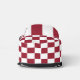El elegante bolso de honda presenta un audaz diseño de cuadros color rojo y blanco burdeos. Para ver más artículos en blanco y borgoña bajo control, haz clic en el enlace "Artes Rocklawn".