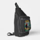 Un gran alce macho se levanta alto en el bosque como hombre, usando una graciosa camiseta de caza, se maravilla con la majestuosa criatura en su hábitat natural.