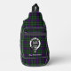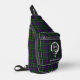 Elegante cruz cuerpo / bolsa de honda presenta la insignia Escudo del Clan Escocés Abercrombie y texto de personalizable sobre fondo tartán.